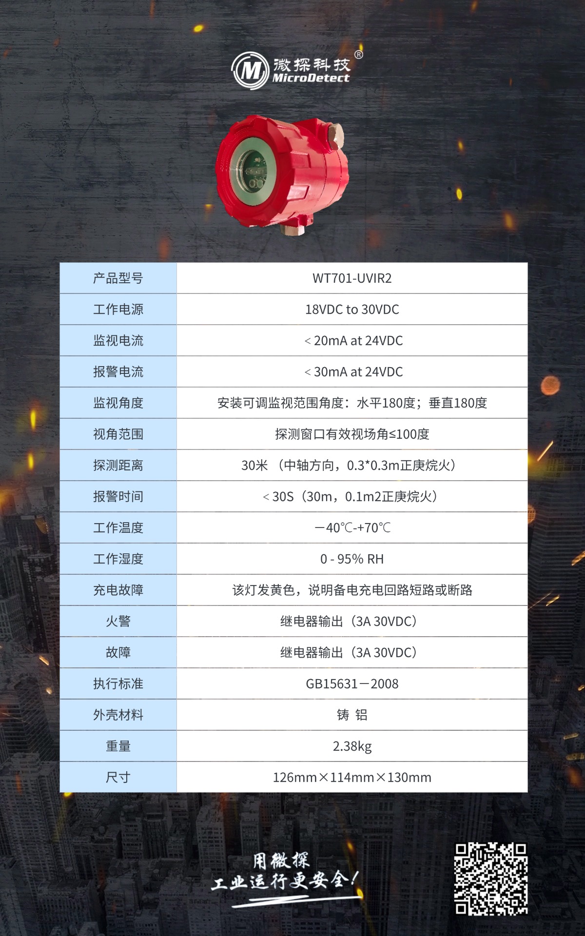 WT701-UVIR2點(diǎn)型紫紅外復(fù)合火焰探測(cè)器是我公司新推出的新一代火焰探測(cè)產(chǎn)品,該產(chǎn)品選擇了紫外和紅外火焰?zhèn)鞲衅鳎瑐鞲衅骺山邮栈鹧姘l(fā)出的輻射能,避免非火災(zāi)干擾源的干擾;同時(shí)該產(chǎn)品克服了探測(cè)靈敏度與誤報(bào)警的矛盾,既具有火災(zāi)探測(cè)靈敏度,又具有傳統(tǒng)火焰探測(cè)器不具備的非火災(zāi)干擾源識(shí)別能力。