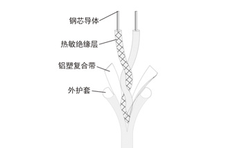 纜式線型感溫火災(zāi)探測器的感溫電纜具有高阻抗特性,其中每根金屬導(dǎo)體外面的絕緣層是用一種特殊的NTC(負(fù)溫度系數(shù))材料制成,信號處理器(專用電氣控制單元)可以通過監(jiān)測材料電阻的變化來反映出系統(tǒng)溫度的變化。