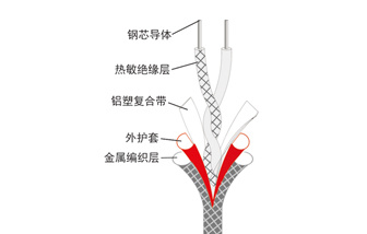 纜式線型感溫火災(zāi)探測器JTW-LD-WT302C(屏蔽型)感溫電纜部分的外金屬編織結(jié)構(gòu)增強(qiáng)了感溫電纜的抗拉伸能力、抗電磁干擾能力,適用于防爆場所或電磁干擾的場所。